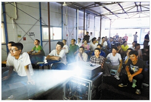 本网讯《深圳特区报》5月27日刊发中建一局华南区域公司“工地影院深受外来工喜爱”文章。全文如下: http://sztqb.sznews.com/html/2014-05/27/content_2887426.htmhttp://sztqb.sznews.com/html/2014-05/27/content_2887426.htm “全国工人先锋号”中建一局深圳地铁9号线项目部,采取新举措关爱外来劳务工,通过与沙头街道办事处共建公益工地影院,丰富外来工文化生活。每月定期组织放映队到中建一局承建的地铁9号线9105标段工地,给外来工免费放电影。自去年10月以来,已免费放映8场次,深受外来工喜爱。图为昨日外来工在“工地影院”观看电影《杨善洲》。