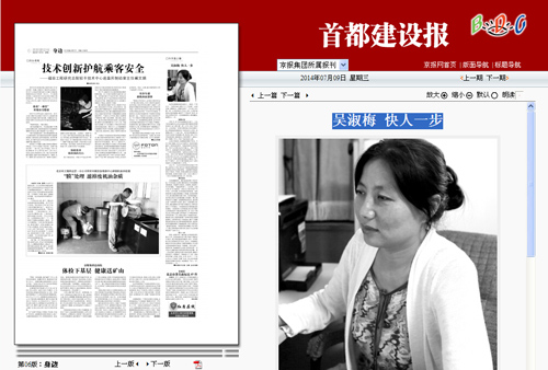 本网讯 7月9日,《首都建设报》身边栏目刊发“中建一局二公司吴淑梅 快人一步”,全文及地址如下:http://sdjsb.bjd.com.cn/html/2014-07/09/content_194567.htm