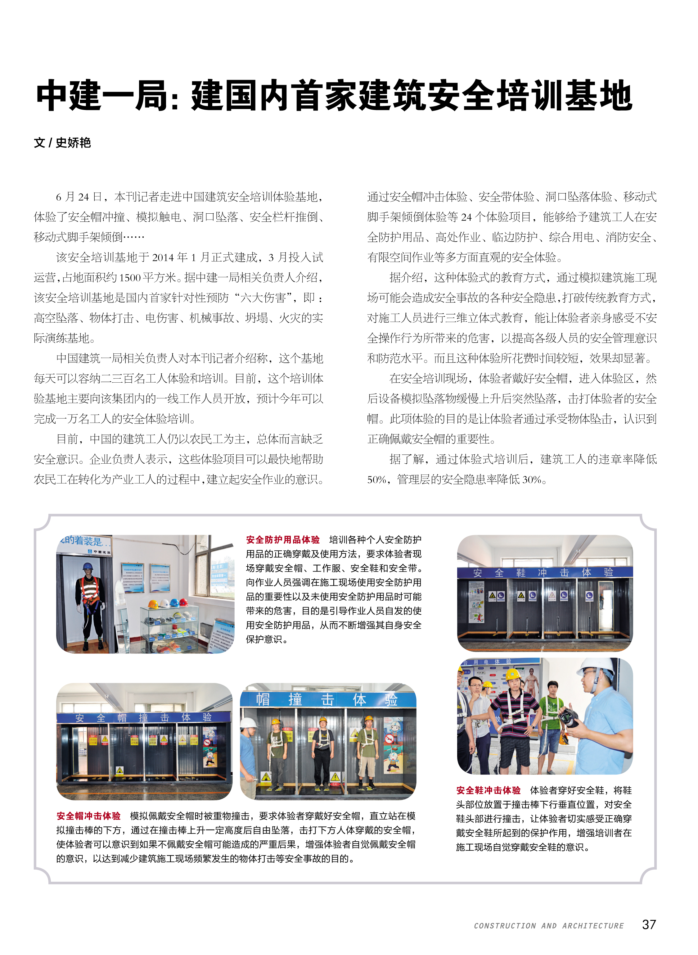 本网讯 《建筑》杂志2014年第15期刊登《中建一局:建国内首家建筑安全培训基地》一文。文章如下: