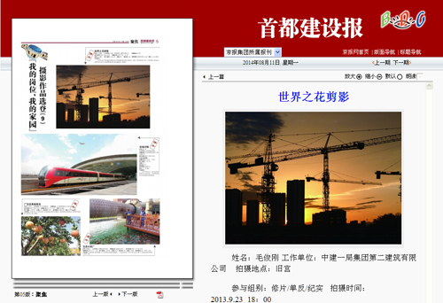 本网讯 《首都建设报》8月11日“我的岗位,我的家园”栏目刊发摄影作品“世界之花剪影”。地址如下:http://sdjsb.bjd.com.cn/html/2014-08/11/content_206034.htm