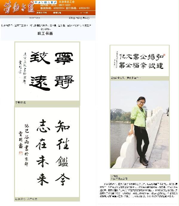 本网讯 3月4日,《劳动午报》对中建一局三公司贾玥鑫书画作品进行了报道。文章地址及内容如下:http://ldwb.workerbj.cn/content/2015-03/04/content_7708.htm