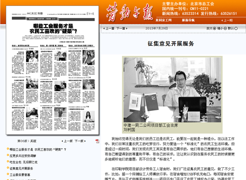 本网讯 《劳动午报》7月29日刊发的专题“那些工会服务才是农民工喜欢的‘硬菜’”中报道二公司项目工会征集意见开展服务,全文及链接地址如下:http://ldwb.workerbj.cn/content/2015-07/29/content_16921.htm