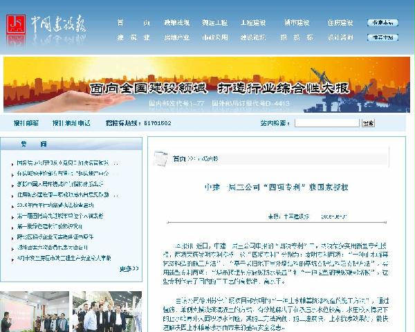本网讯 6月7日,《中国建设报》刊登《中建一局三公司“四项专利”获国家授权》一文,对中建一局三公司荣获国家专利进行了报道,链接地址及原文如下: