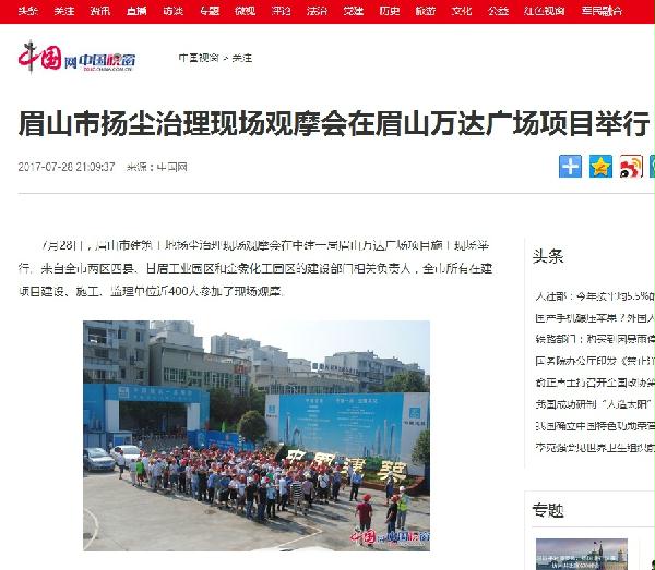 本网讯 7月28日 中国网、搜狐网等媒体刊发新闻《眉山市扬尘治理现场观摩会在眉山万达广场项目举行》,报道了眉山市建筑工地扬尘治理现场观摩会在中建一局三公司眉山万达广场项目施工现场举行,链接及原文如下: