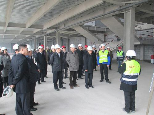 2月25日,天津市副市长、滨海新区区委副书记、区长宗国英,空港经济区管委会主任冯志江一行莅临建设发展公司通用电气医疗及生命科学仪器设备生产基地项目检查指导工作。GE医疗天津生产基地厂长Mike、业主方项目经理张朝晖、项目经理林佐江等各方领导陪同检查。
