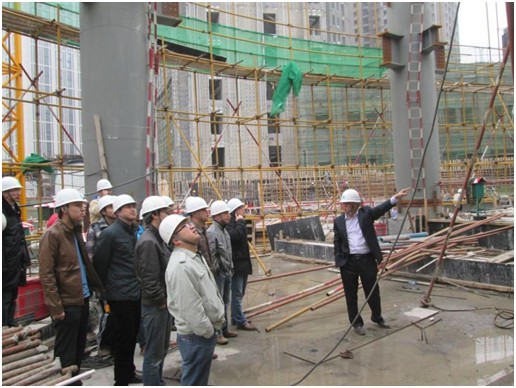 本网讯 (通讯员 石峰)3月28日上午,总承包公司青岛国际航运中心项目部转会风,将质量会搬到施工现场,在施工现场召开地上结构现场质量会,现场探讨项目质量问题。 上午10时许,该项目一层一段墙体钢模刚刚拆除,项目经理雷传勇就带领项目技术部、质量部、工程部的20余人来到施工现场,就地找问题、分析原因、想办法,为保证工程争创鲁班奖献计献策。