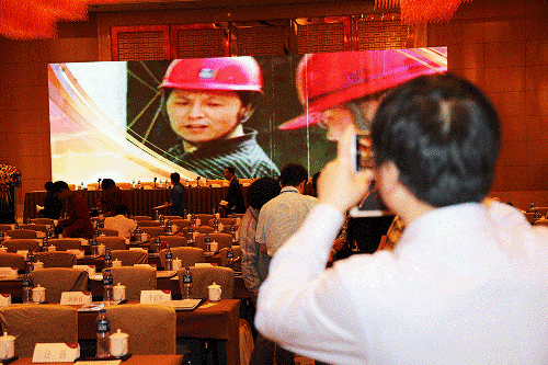 会议期间播放的中建一局宣传片使中建一局再次成为全场的焦点。看,这位嘉宾拍下了宣传片的每个精彩片段,还伸出大拇指为中建一局点赞。