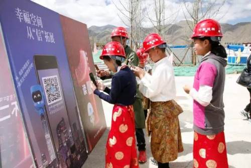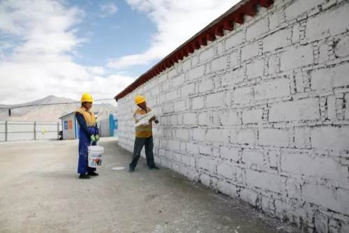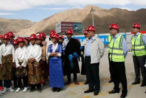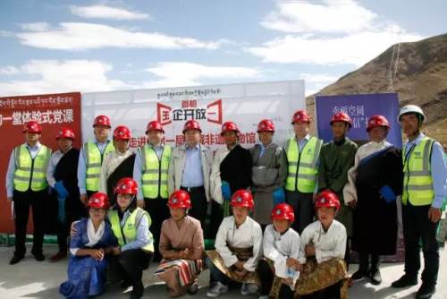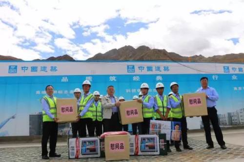 罗世威、于震、李欣荣为西藏非遗博物馆项目员工和一线工人发放慰问品 蓝宝和小萱在世界屋脊受到藏族同胞的热烈欢迎
