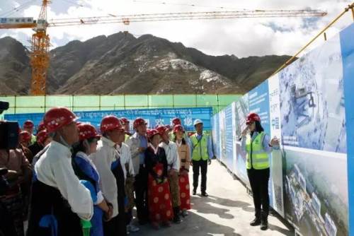 西藏非物质文化遗产博物馆项目海拔3750米 按一馆一园理念进行设计 是世界最高的非物质文化遗产博物馆 生产出长安街31座地标的 中建一局首创的5.5精品工程生产线 去年登上世界屋脊 这次又创造了4项之最 中建一局五公司党委书记、董事长李欣荣,中建一局党委/工会/品牌管理部副部长刘琼讲解5.5精品工程生产线