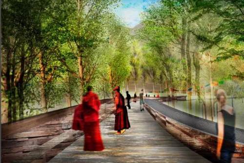 在一馆建设中 藏族工匠将传承千年的纯手工工艺 与5.5精品工程生产线融合 在西藏首次应用现代BIM技术 建造传统藏式建筑 西藏非遗博物馆与布达拉宫隔拉萨河相望 是西藏首个劲性混凝土结构建筑 劲性混凝土结构通常应用于超高层 具有很好的防震抗震功能 在一园建设中 首次用大型乔木全冠无土移植等技术 把银杏等树种移植到世界屋脊 让西藏非遗博物馆园林美景如画 西藏非遗博物馆项目拥有 世界最高的安全体验馆 也是拉萨第一个可移动安全体验馆 中建一局首创了中国第1家 实景体验式建筑安全培训基地 藏族同胞进行安全体验