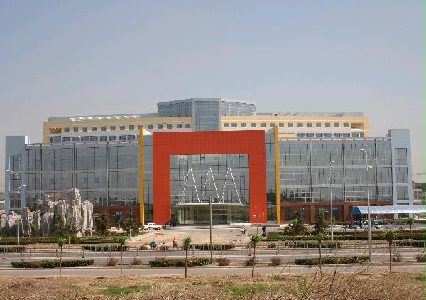 工程说明: 北京同仁医院经济开发区院区门诊医技病房楼工程地处北京亦庄经济技术开发区62C1地块内,是集医疗、住院、疗养、科研、教学为一体的综合性医院门诊大楼,是北京市医疗系统和北京市经济开发区的重点工程。该工程地下2层,地上分为门诊综合楼和病房楼两部分,由一个梯形通廊相连。其中门诊综合楼地上4层,病房楼地上9层,檐高约为45.2m,主体结构为框架剪力墙结构,基础为筏板式基础,屋面局部为网架结构。屋面防水采用氯磺聚乙烯防水卷材+聚合物水泥基复合防水涂料。外装饰南立面为幕墙及拉丝不锈钢落地窗、花岗岩线条,北立面为玻璃幕墙及浮雕形涂料饰面,东西立面为浮雕形涂料饰面,勒角为花岗岩勒角。外墙立面错落有致,外观体现了现代感并与开发区的整体环境融为一体。电气部分包括:供电系统、配电系统、电气照明系统、防雷接地系统、火灾报警及消防联动系统、楼控系统、电话系统等,智能化程度较高。该工程2002年获“北京市优质结构工程长城怀金奖”;2005年获“国家优质工程奖”、“北京市建筑竣工长城杯银奖(公建)”、“中建总公司优质工程金奖”。